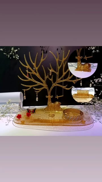 جا جواهری گوزن طلایی و نقره ای اکلیلی