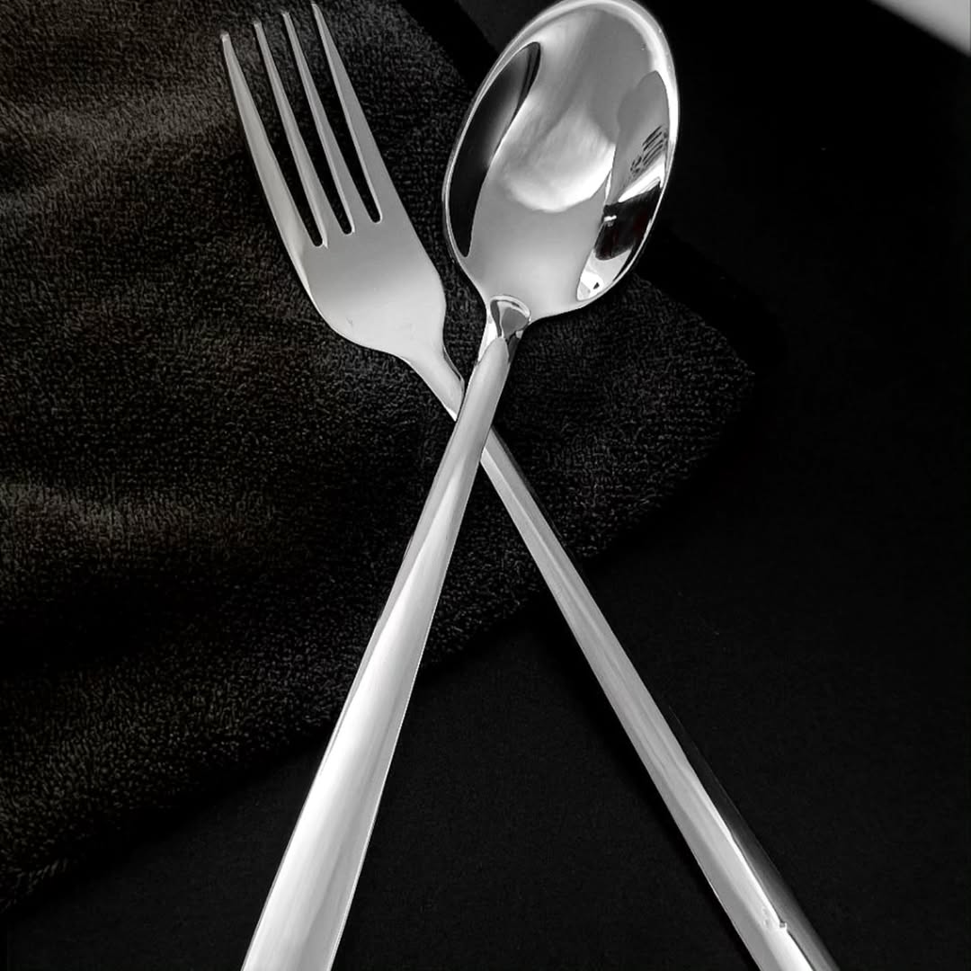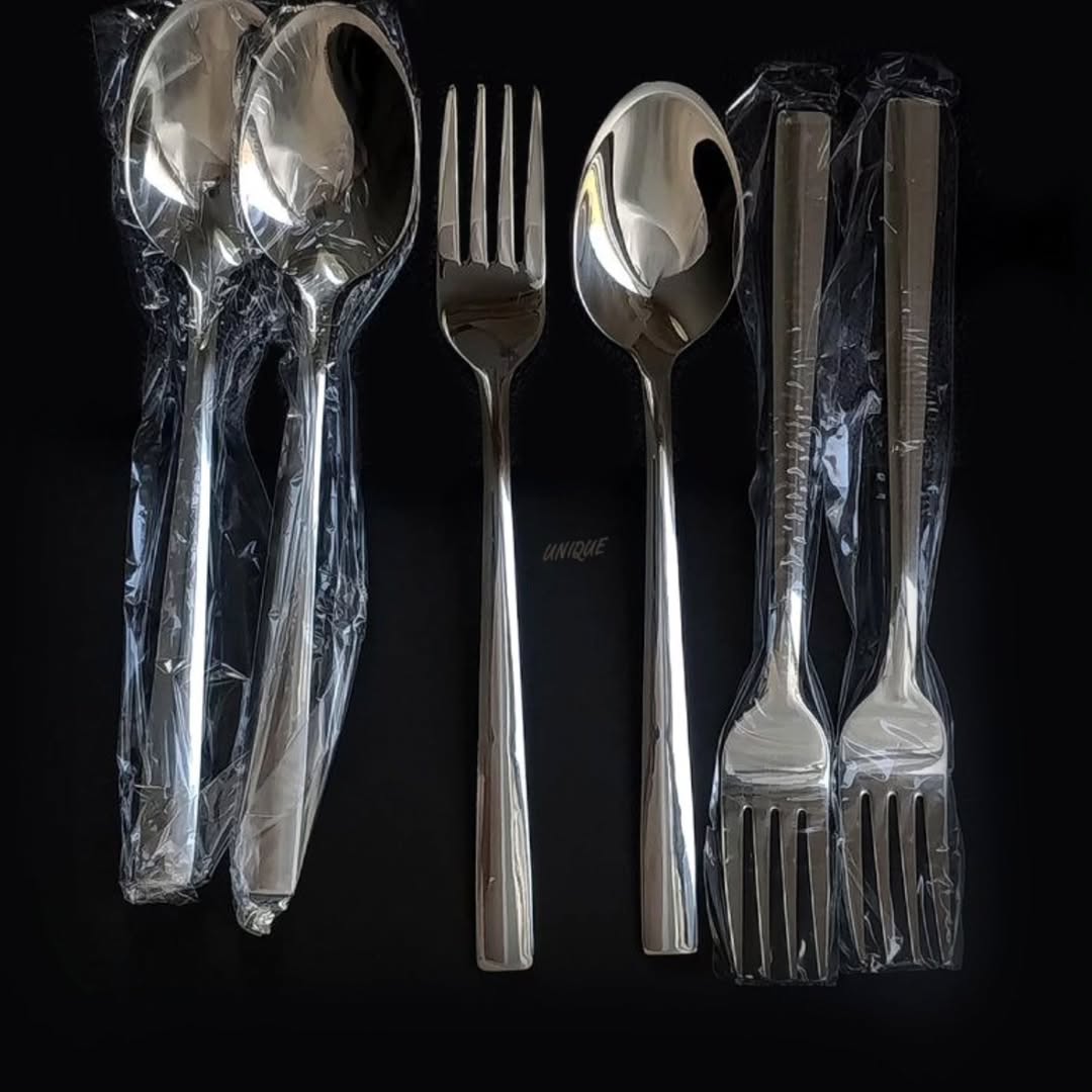این قاشق و چنگال شامل ۶ عدد چنگال و ۶ عدد قاشق است. جنس آن استیل ضد زنگ و براق بوده و در کارتون کادویی ارائه میشود.